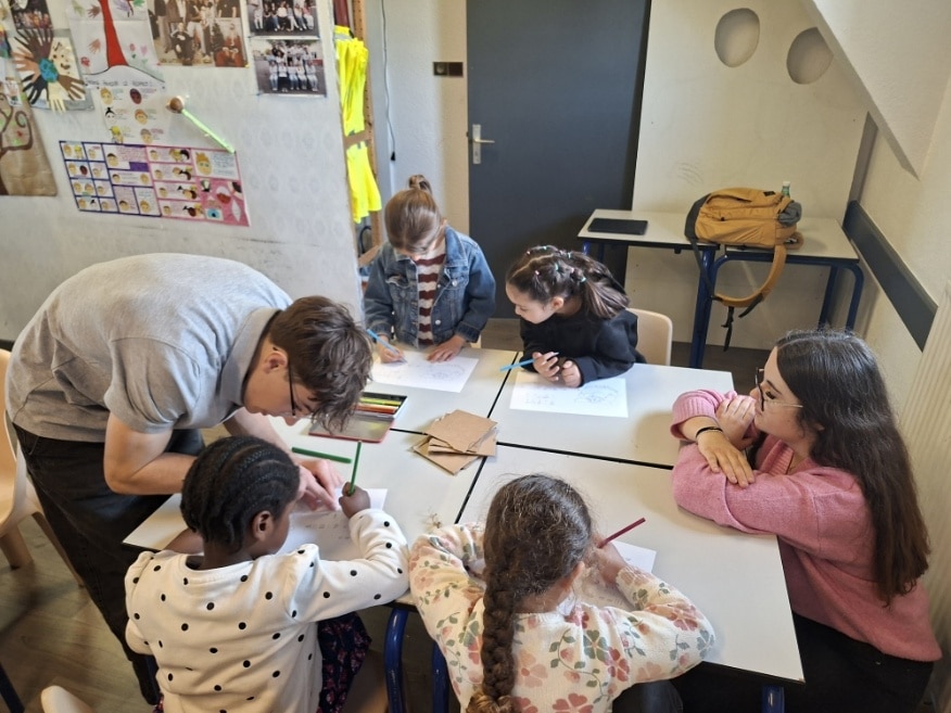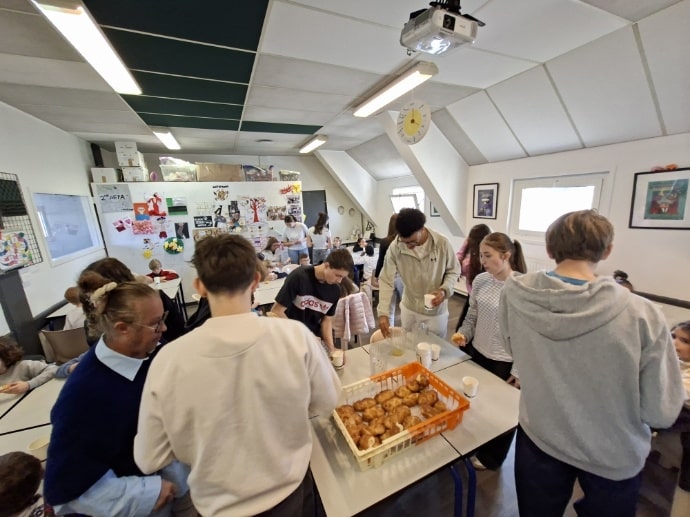En co-intervention français/animation, Mme Brun et Mr Haensler avec les élèves de 2nde AEPA ont reçu les élèves d’une GS de l’école Niki de St Phalle à St Médard en Jalles pour leur proposer durant l’après-midi la lecture du conte de Cornebidouille et des activités autour de ce même conte. Les élèves ont préparé cette venue quelques semaines à l’avance en se saisissant des personnages et en mettant en place des activités très appréciées par les enfants. Le lycée a offert un goûter préparé par nos jeunes boulangers pour le plaisir de tous. Les jeunes élèves de St Médard en Jalles sont repartis heureux de cette expérience dans les murs de Saint Michel.