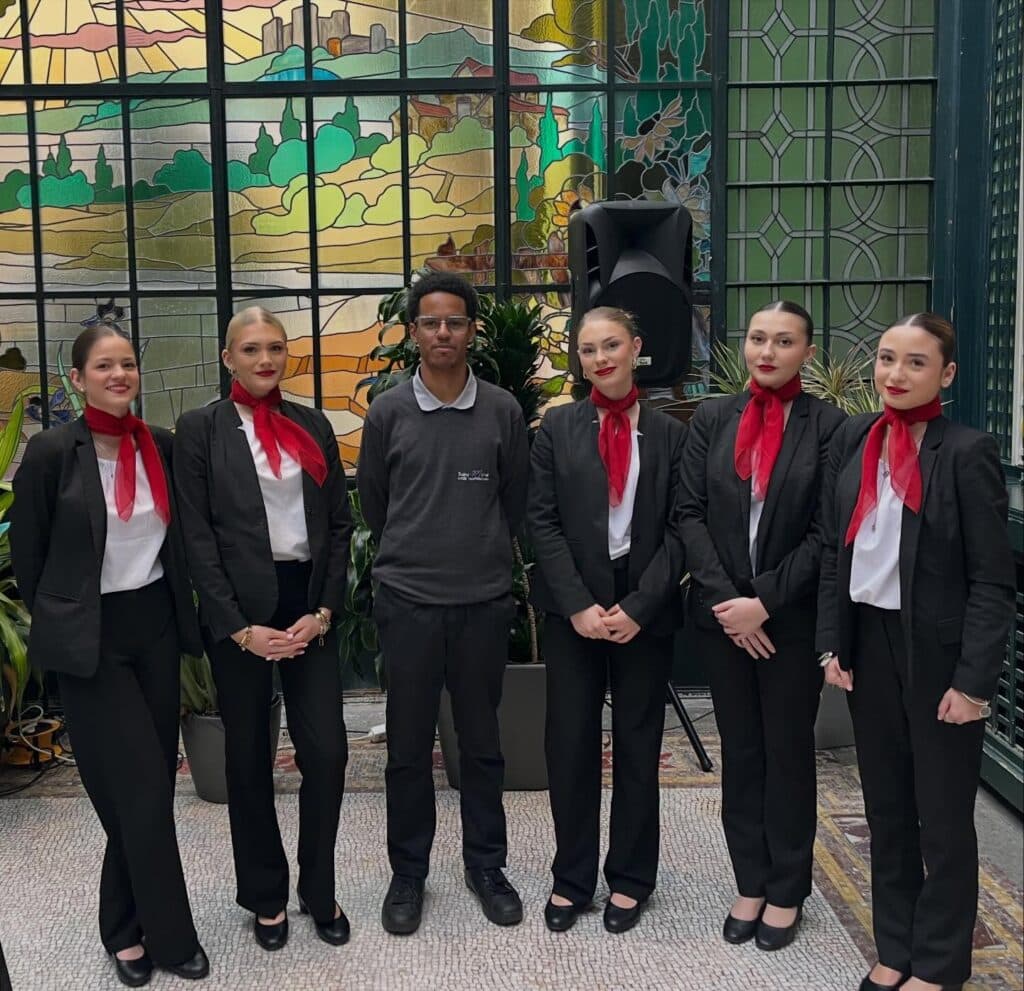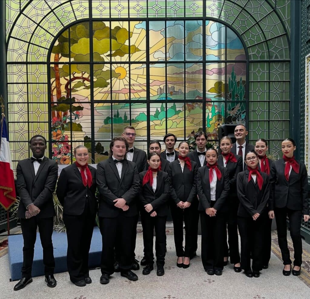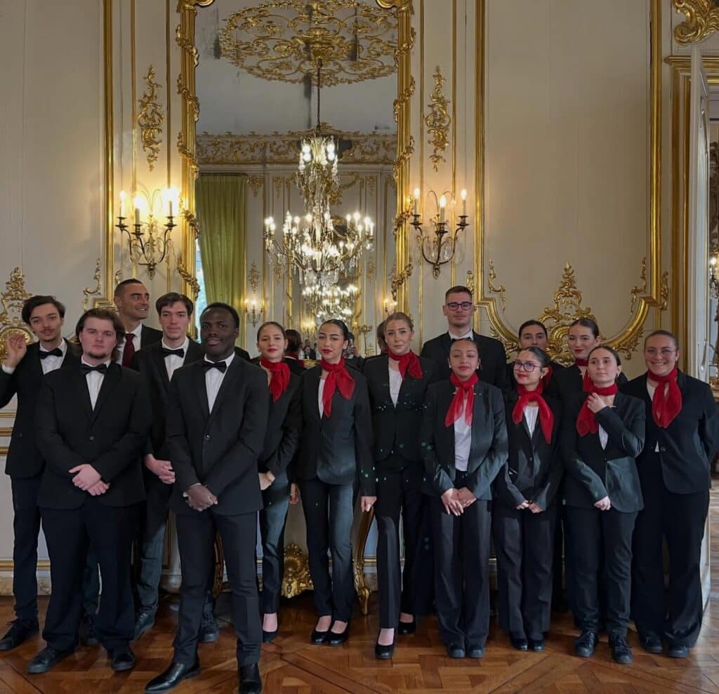 Les élèves de terminale Métiers de l’Accueil et de commercialisation et services en Restaurant encadrés par Monsieur Convenant, en extra à l’hôtel préfectoral de la Gironde. Une belle expérience au service de la république.